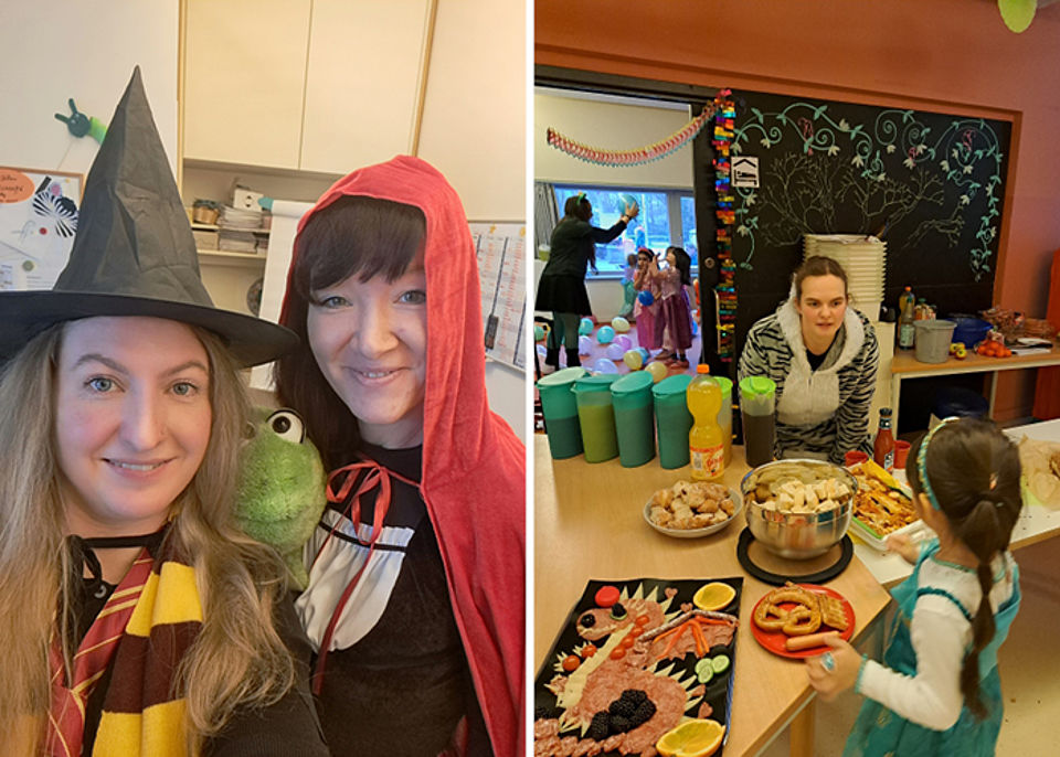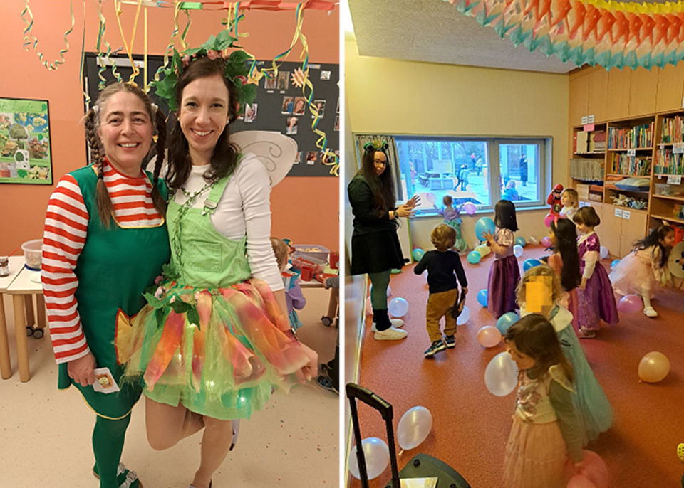 Daneben förderten Stopptanz und Stuhlpolonaise Bewegung, Rhythmusgefühl und Teamgeist. Das Faschingsbuffet wurde von den Eltern ausgiebig mit Speisen und Getränken ausgestattet und durch die Erzieher*innen liebevoll hergerichtet: Obstspieße, Pizzaschnecken, ein toller salami-Drachen,Gemüse-Sticks mit leckeren Dips und bunte Getränke brachten Vielfalt auf den Tisch. Bastelstationen luden zum Kreativ sein ein. Auch das pädagogische Team ließ es sich nicht nehmen, mit entsprechender Kostümierung den Tag bunter werden zu lassen. Eine tolle und ausgelassene Stimmung, viel elterliche Unterstützung und jede Menge wunderbare Erinnerungen an einen gelungenen Faschingstag.