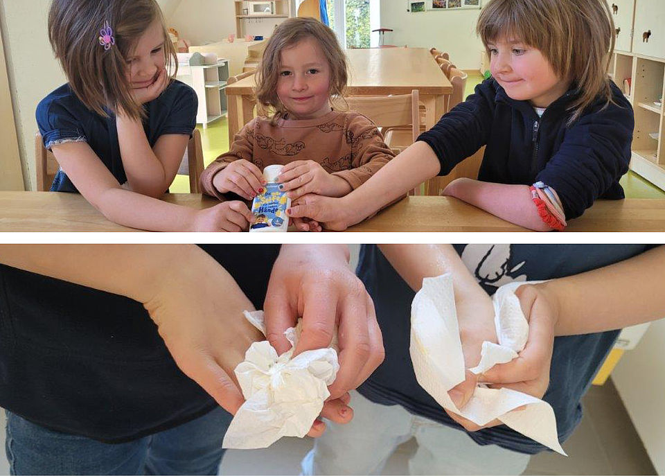 Mit Frau Kerstin Kräger und Frau Sarah Wange von Medipolis erlebten unsere Kinder einen wunderbaren Aktionstag und absolvierten eine professionelle Hygieneschulung. Mit Freude und Spaß wurde ganz viel experimentiert, getestet, geübt und gelernt.