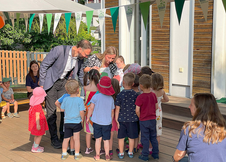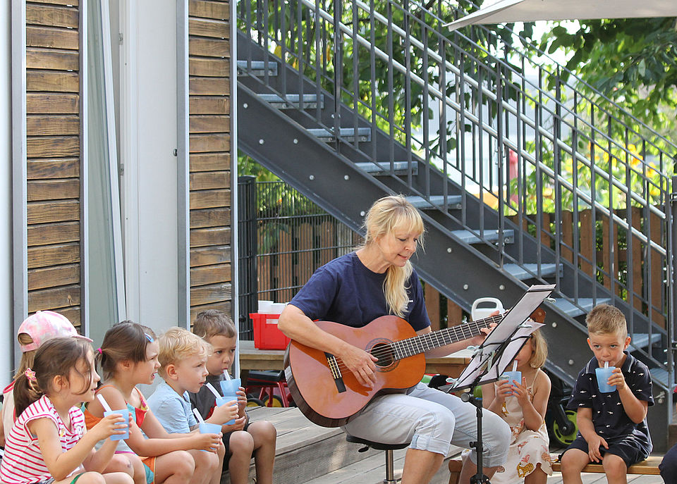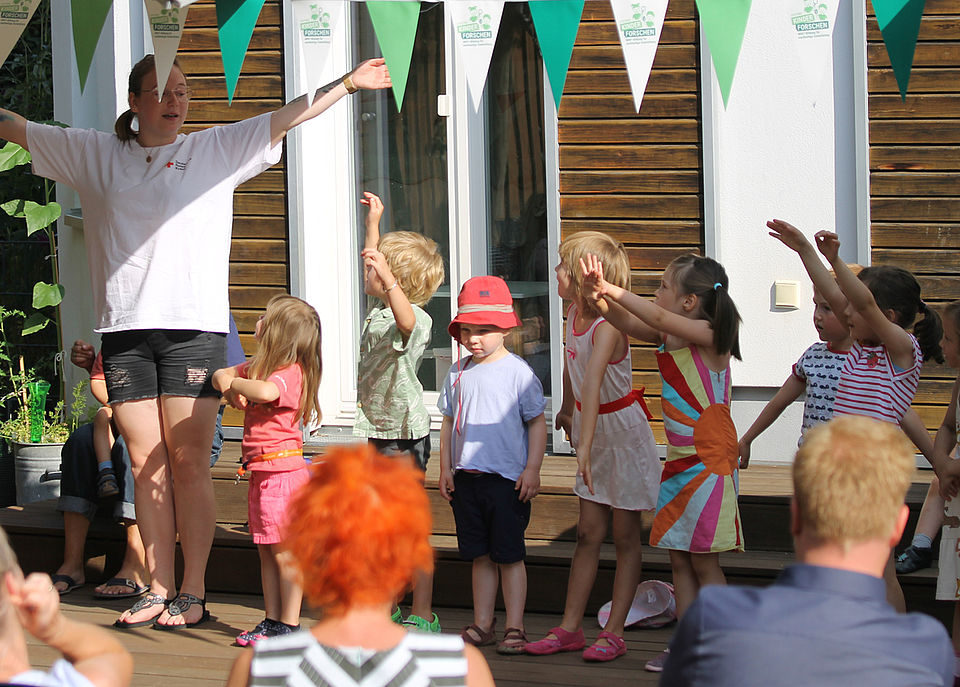 Die Kinder der Kita Sternschnuppe und die Erzieherinnen um Kitaleiterin Susanne Hoffmann hatten ein liebevoll gestaltetes musikalisches Rahmenprogramm vorbereitet. Dabei kamen selbstgebaute Wasserinstrumente zum Einsatz, die für besondere Klänge und staunende Gesichter sorgten.