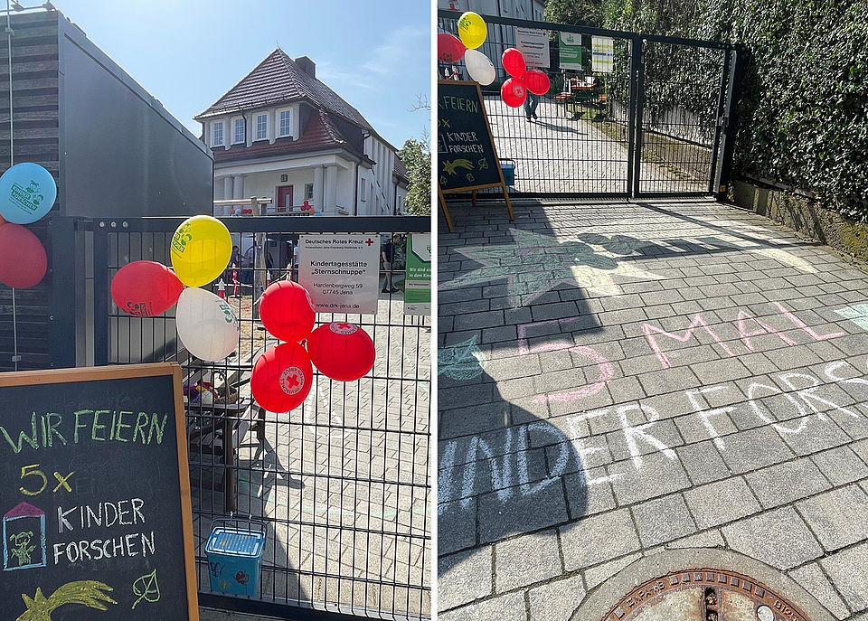Zur feierlichen Übergabe fanden sich zahlreiche Gäste ein, darunter Jenas Oberbürgermeister Dr. Thomas Nitzsche, Ortsteilbürgermeister Michael Müller, die Vorstände des DRK-Kreisverbandes Jena-Eisenberg-Stadtroda e.V. Dr. Astrid Weiß und Andreas Dippl, sowie von MINT Thüringen die Bereichsleiterin Susanne Haun und die Koordinatorin Franziska Platz. Weitere geladene Gäste gratulierten dem Team der DRK-Kita zu seiner langjährigen Arbeit im Sinne einer forschenden, entdeckenden und kreativen Pädagogik.