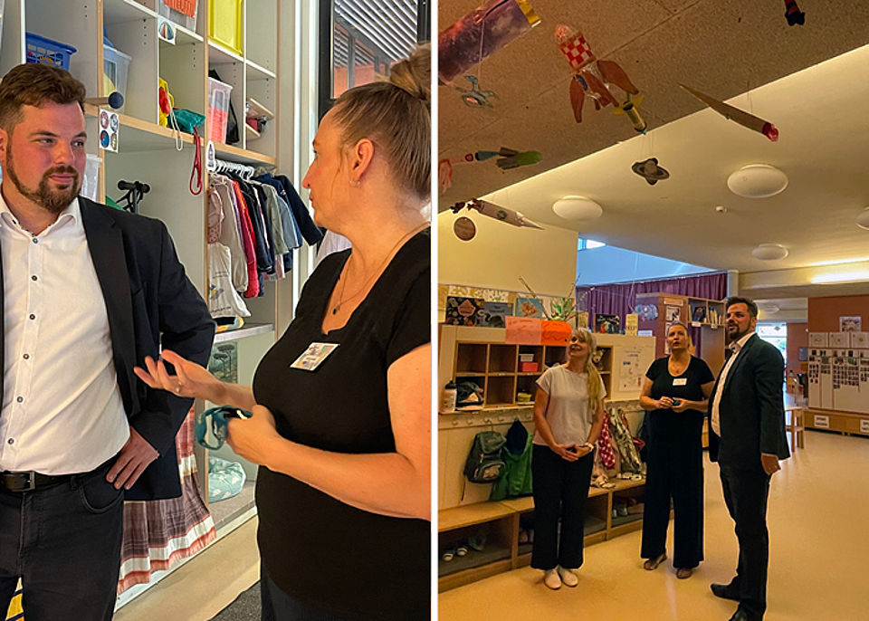 Johannes Schleußner, Dezernent für Jugend, Bildung Kultur und Sport der Stadt Jena besuchte, (neben 21 weiteren Kitas in Jena) im Rahmen seiner Kita-Sommer-Tour im August unsere Integrative Kneipp-Einrichtung. Mit dem Ziel sich einen Überblick über die Kitalandschaft in Jena zu verschaffen, ins Gespräch zu kommen und Anliegen der Kinder und Fachkräfte zu hören, nahm sich Herr Schleußner viel Zeit für unsere Einrichtung.