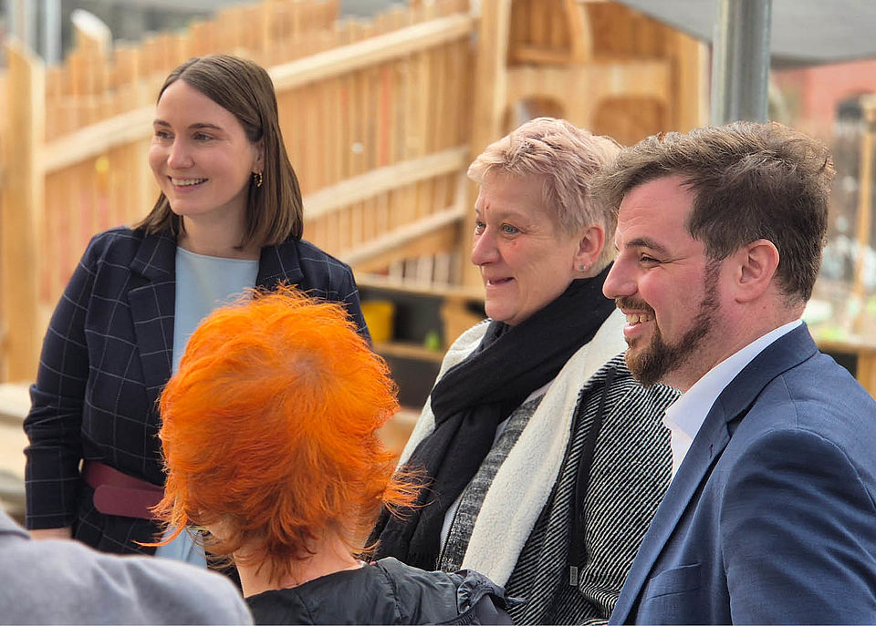 Anlass des Besuchs war die Übergabe eines Fördermittelbescheids in Höhe von über 10.000 Euro zur Finanzierung neuer Sonnensegel für das Außengelände der Einrichtung.