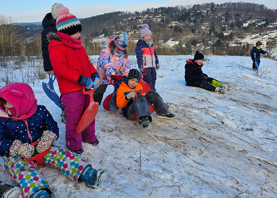 Der schneebedeckte Walpersberg in Kahla lädt unsere begeisterten Wintersportler regelmäßig zu flotten Touren ein.