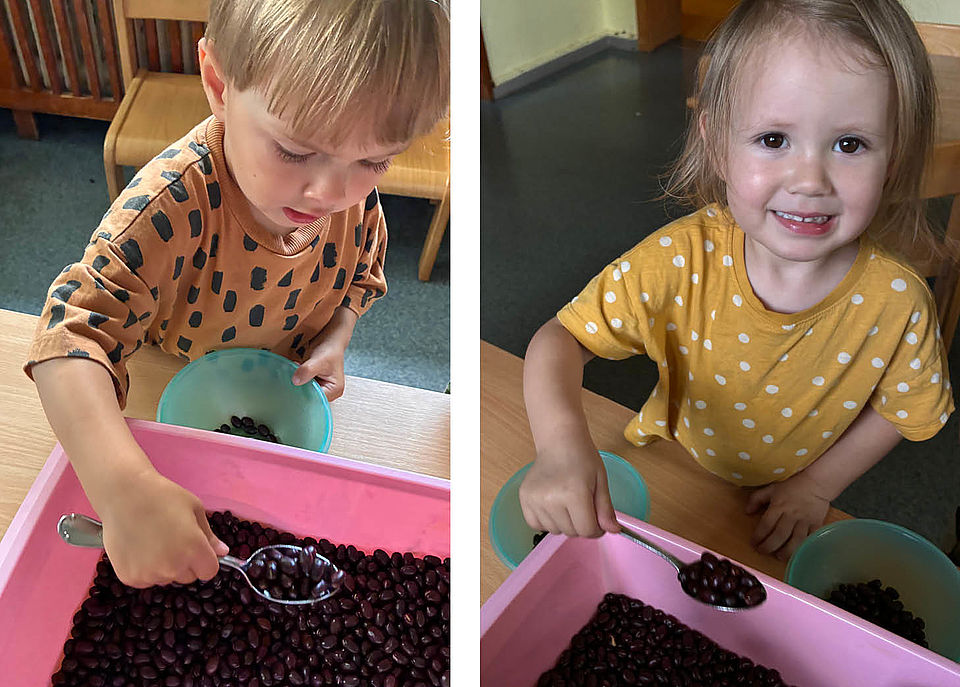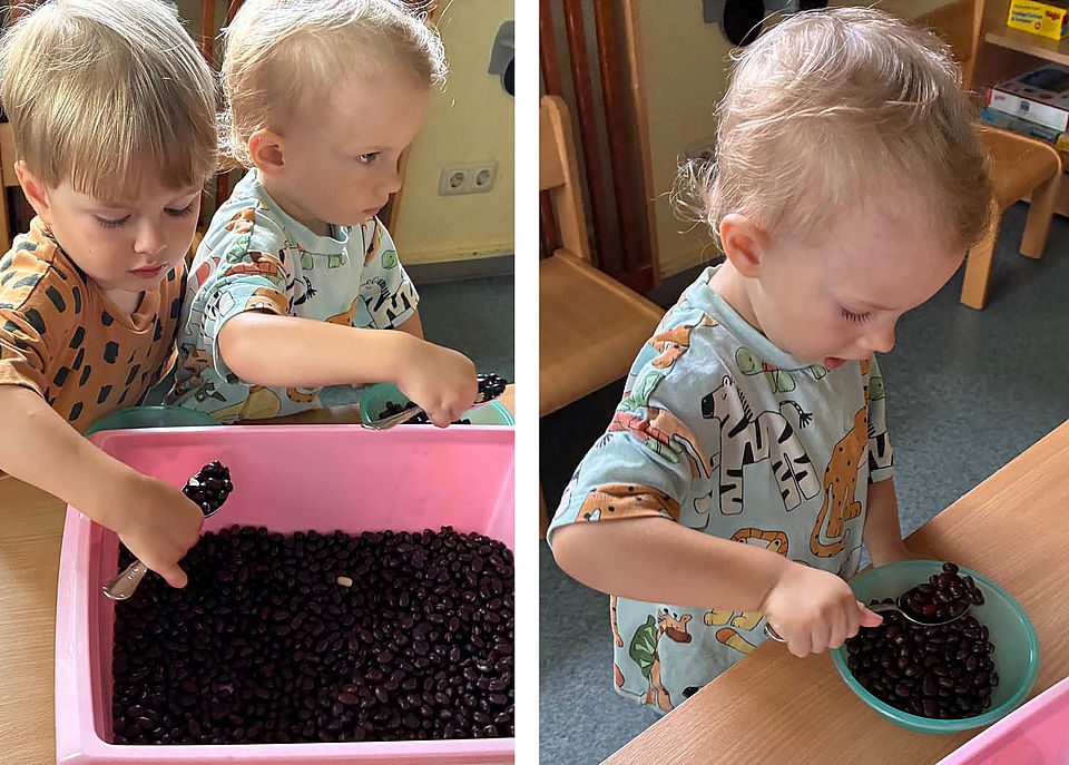 Auch wir Kleinen können das schon. Höchste Konzentration! Dabei trainieren wir unsere Feinmotorik und haben viel Spaß dabei!