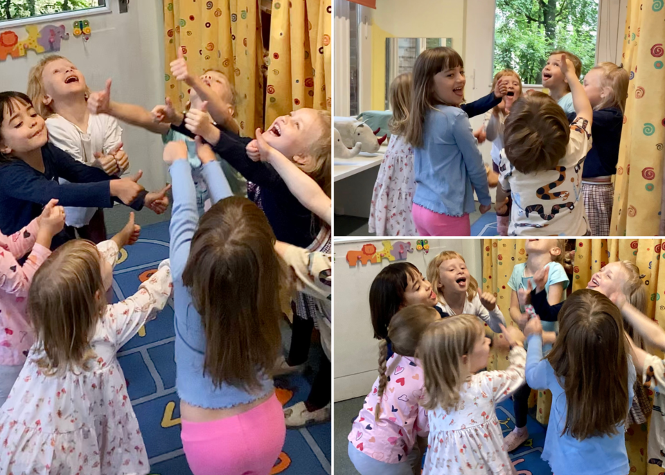 So begann die spontane Tanzrunde, zu der sich plötzlich fast der gesamte elementare Bereich aufmachte. Egal ob als Mittänzer oder Zuschauer, alle von unseren Großen hatten hierbei eine Menge Spaß.
