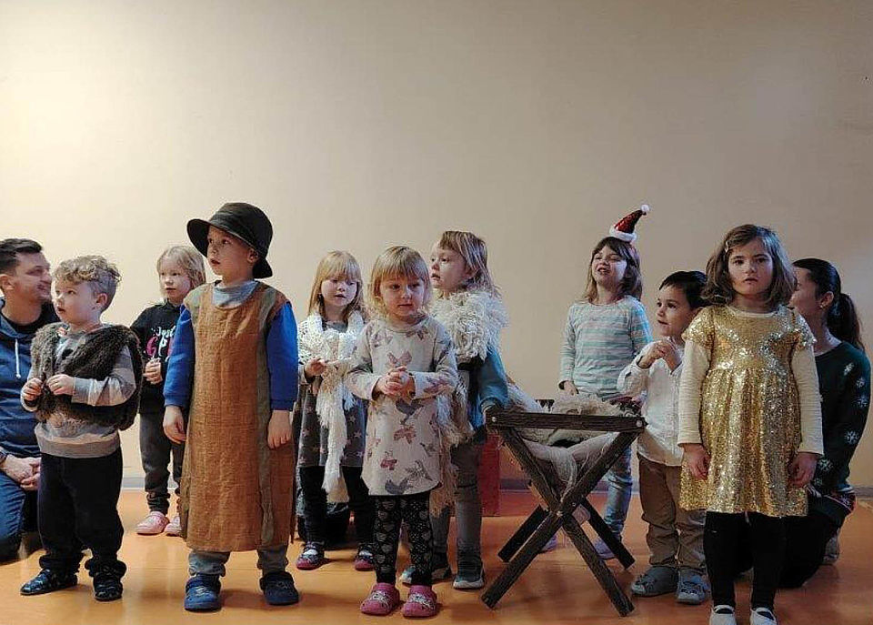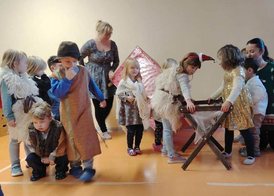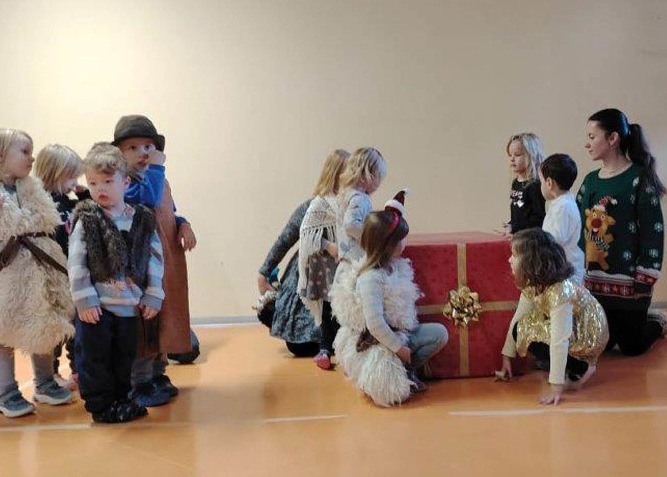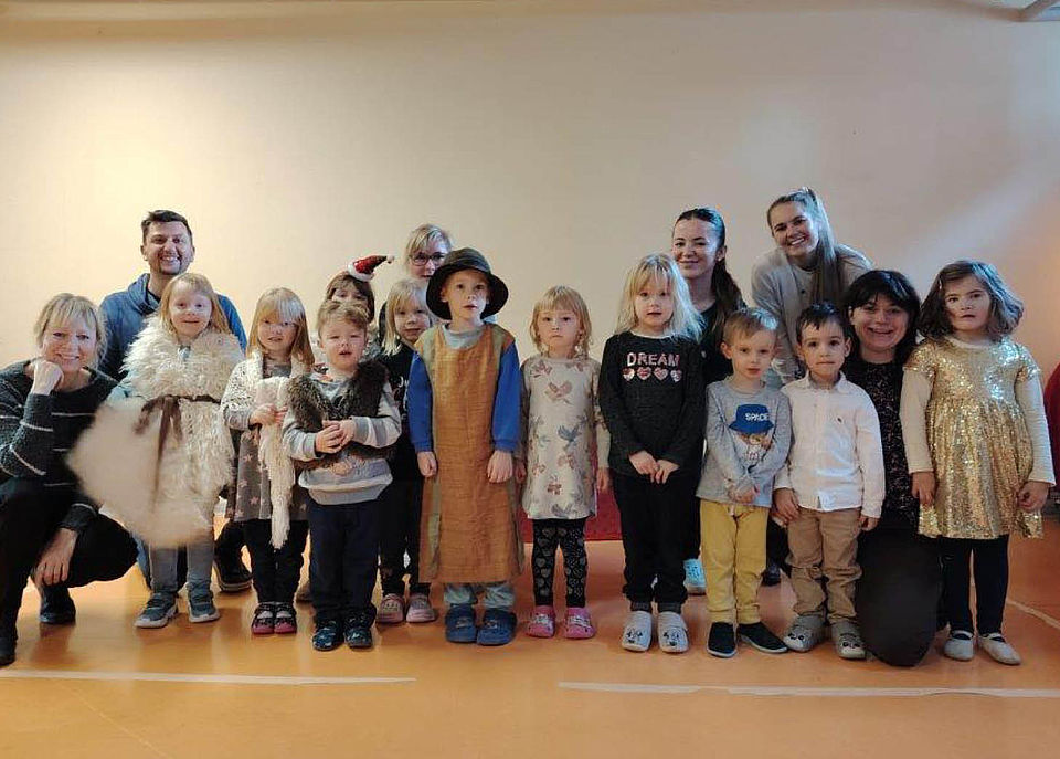 Unsere diesjährige Weihnachtsfeier eröffneten wir mit einem ganz besonderen Stück: Dem Musical "Warum feiern wir Weihnachten?"- die Lieder selbst komponiert, die Texte selbst geschrieben und das alles zugeschnitten auf unsere Kita BUNTE WELT. Seit November probten wir mit viel weihnachtlicher Motivation unser wunderbares Musical; die Texte wurden gelernt, die Melodien einstudiert, die Rollen verteilt. Drei große Auftritte gab es dann: Zuerst erfreuten die Kinder die Senioren der Tagespflege der Diakonie, dann die Kahlaer Menschen auf dem Weihnachtsmarkt und nun die Familien unserer Kita. Und überall war das Publikum begeistert. Hatten doch alle erfahren, woher die Tradition des Weihnachtsfestes eigentlich stammt und dass nicht die Geschenke im Vordergrund stehen sollte, sondern das friedliche Miteinander aller Menschen.