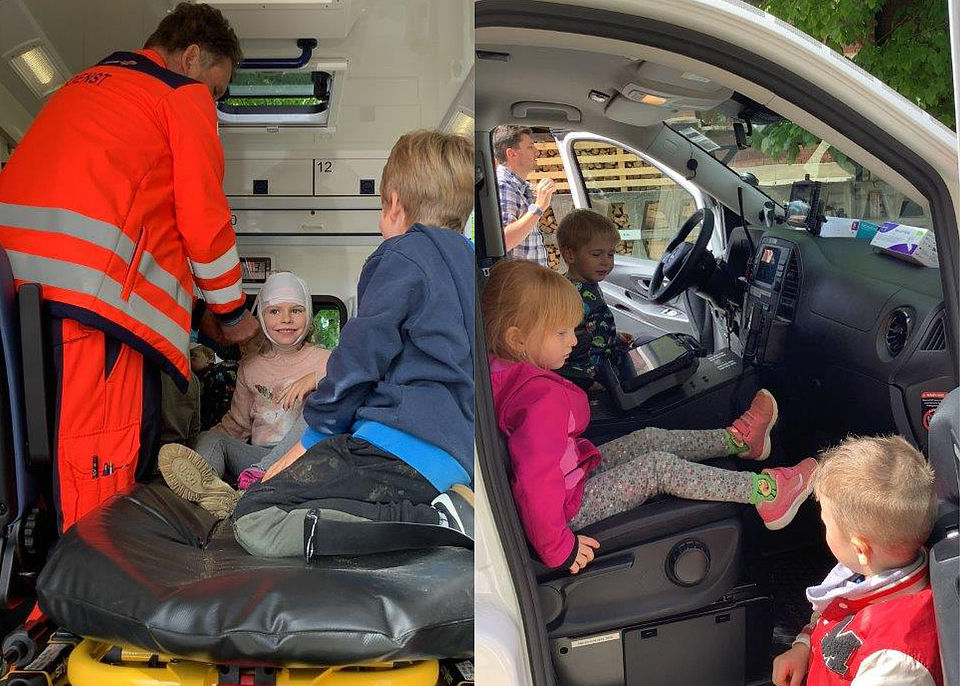 Zum diesjährigen Weltrotkreuztag erhielten die Kinder der Kita BUNTE WELT einen spannenden Einblick in die unverzichtbare Arbeit des Rettungsdienstes. Das freundliche Team beantwortete die vielen Fragen der Kinder, erklärte die technische Ausstattung des Rettungswagens auf kindgerechte Weise und legte den einen oder anderen Kopfverband an. Ein unvergesslicher Vormittag! Herzlichen Dank an unser DRK-Rettungsteam!