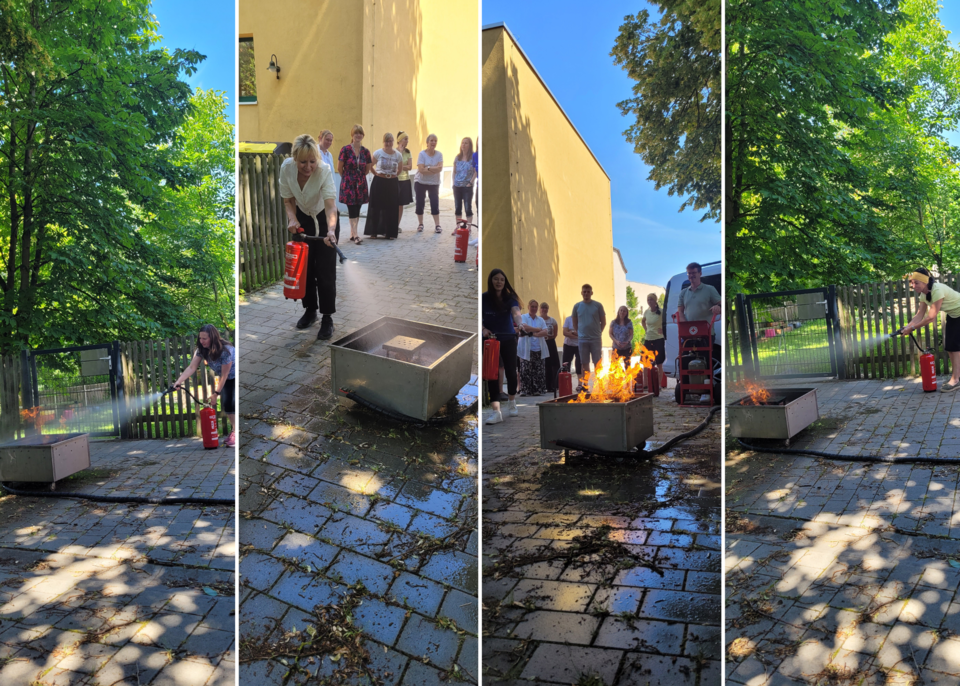 Am Nachmittag fand der wertvolle Teamtag ein heißes Ende: Das Team konnte unter Anleitung von Sebastian Gimper seine Kompetenzen im Bereich Arbeitsschutz und Brandschutz festigen. Ihm gelang es ihm wieder, das Team für diese Themen zu begeistern. Und jede Fachkraft bediente am Ende selbstsicher den Feuerlöscher und löschte die Flammen.