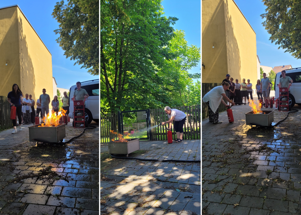 Am Nachmittag fand der wertvolle Teamtag ein heißes Ende: Das Team konnte unter Anleitung von Sebastian Gimper seine Kompetenzen im Bereich Arbeitsschutz und Brandschutz festigen. Ihm gelang es ihm wieder, das Team für diese Themen zu begeistern. Und jede Fachkraft bediente am Ende selbstsicher den Feuerlöscher und löschte die Flammen.