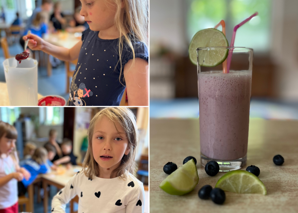 Heute wurde es bei uns besonders lecker: Gemeinsam haben wir einen sommerlichen Erfrischungstrunk aus Joghurt, frischen Beeren und einem Hauch Honig zubereitet. Mit viel Freude wurde gemixt, probiert und natürlich auch genascht.