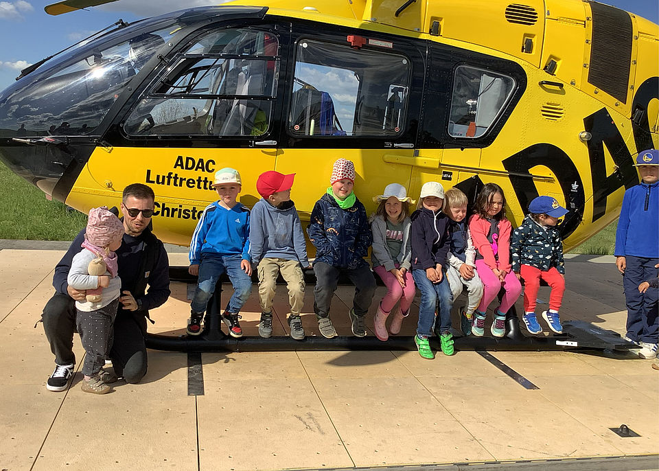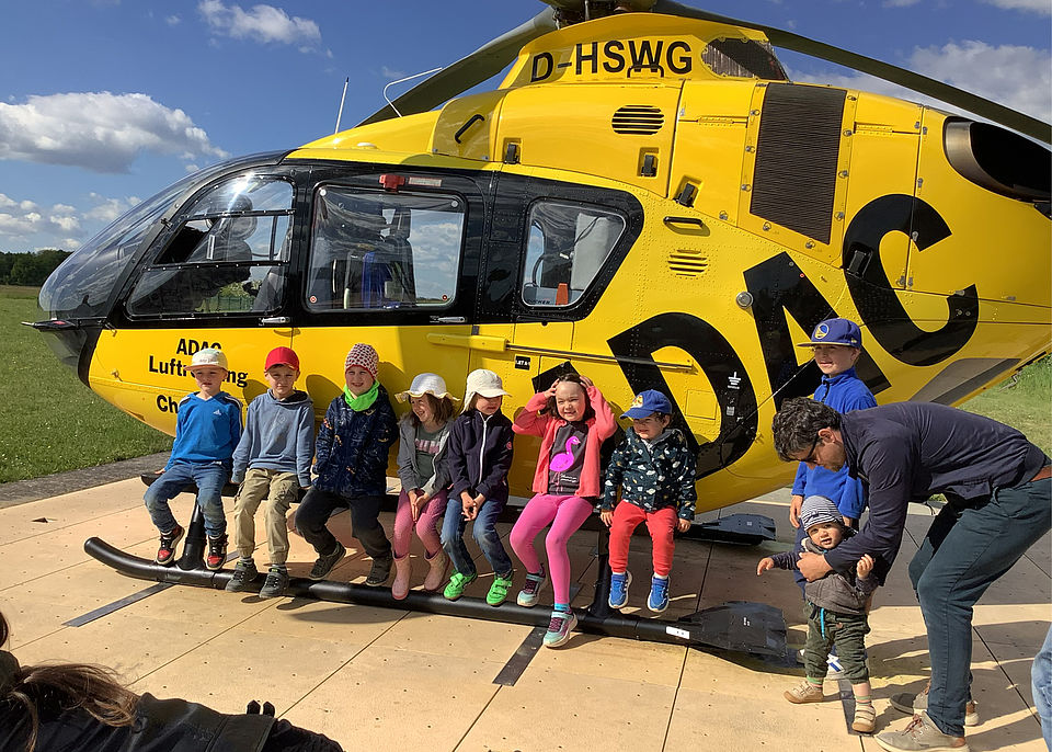 Lieber Pilot Mario Klose, lieber Notarzt Philipp Sänger, lieber Rettungssanitäter Jörg Erbse, es danken euch von ganzen Herzen die Kinder, die Eltern und die Erzieher für diesen spannenden Nachmittag. Wenn unsere Kinder am Himmel Christoph 70 entdecken, ist der Aufschrei nun besonders groß. Die Kinder winken und rufen euch wichtige Menschen, die sie darin vermuten.