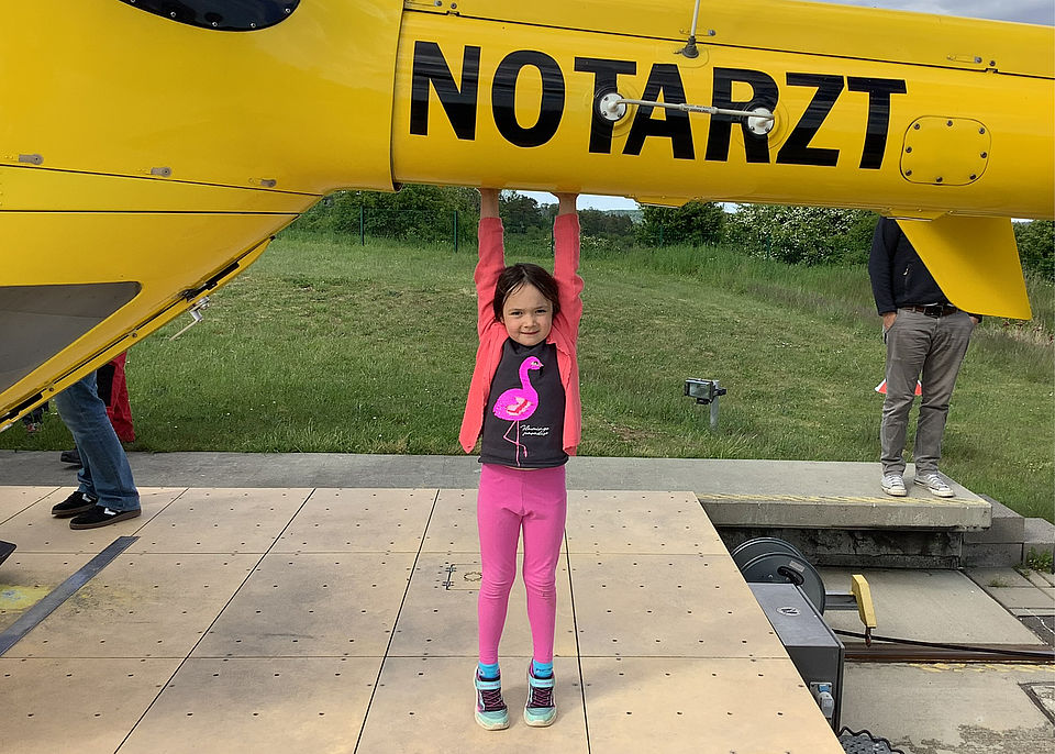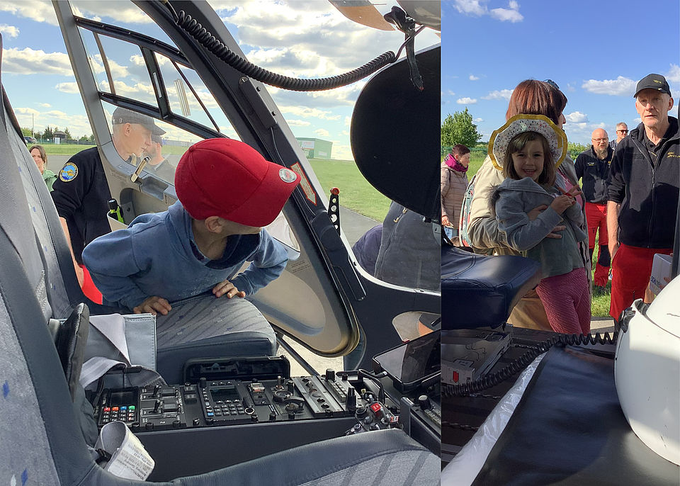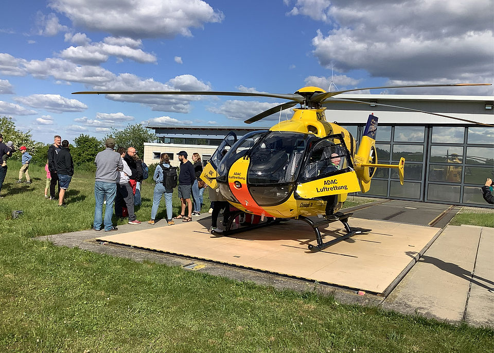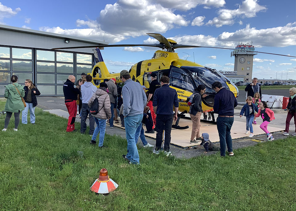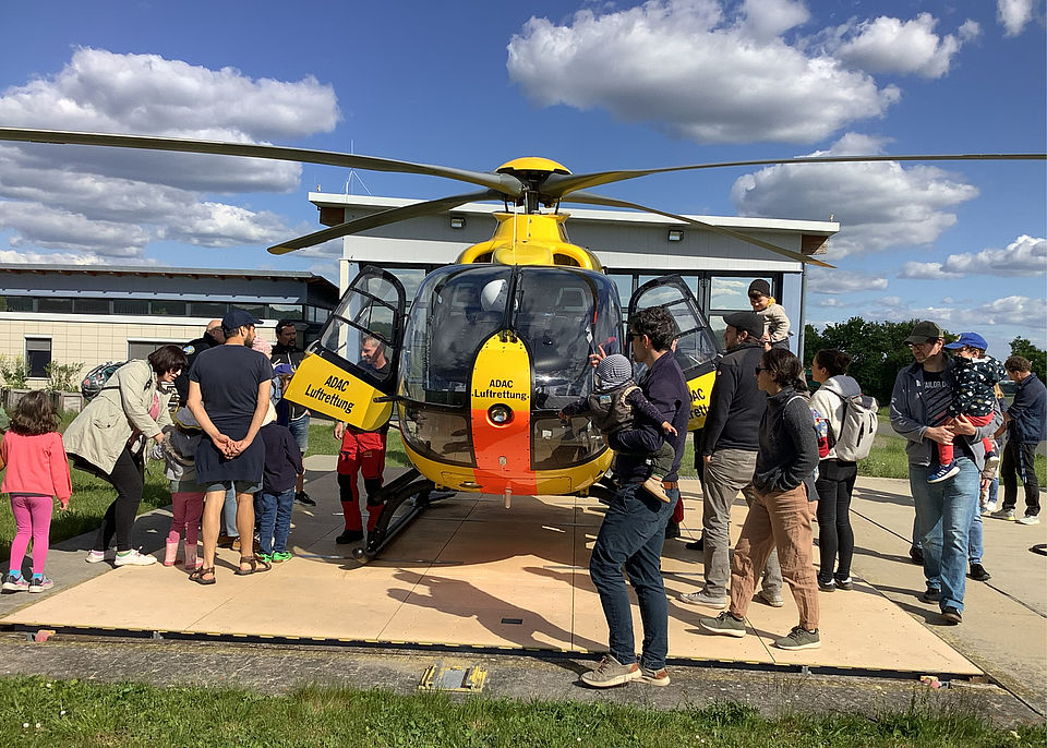 Mit Kindern und Eltern fuhren wir nach Schöngleina auf den Flugplatz. Das Ziel war klar: Wir wollten den Rettungshubschrauber Christoph 70 genau unter die Lupe nehmen. Das Glück war auf unserer Seite - der Hubschrauber stand tatsächlich zur Verfügung, denn er war in keinem Rettungseinsatz. Das kompetente und freundliche Team beantwortete den Kindern und Eltern jede Frage. Und davon gab es eine Menge.