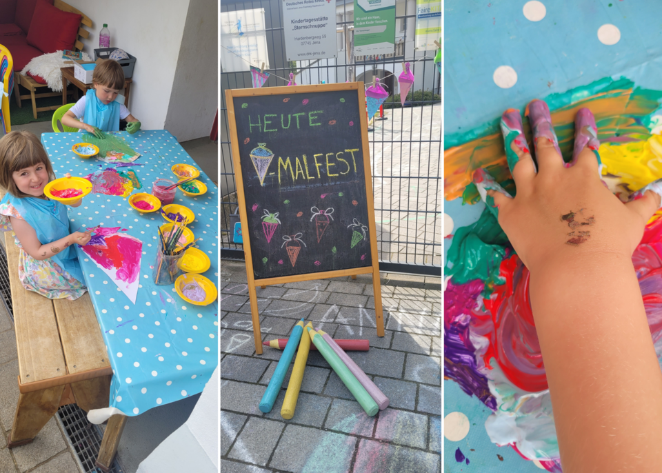 Ein farbenfrohes Malfest fand am 26. Juni in unserer Kita statt. Die Kinder malten, klebten und zeichneten große Zuckertüten, die unseren Garten festlich für den nächsten großen Tag - das Zuckertütenfest - schmücken sollten. Es entstanden wunderbare Kunstwerke.