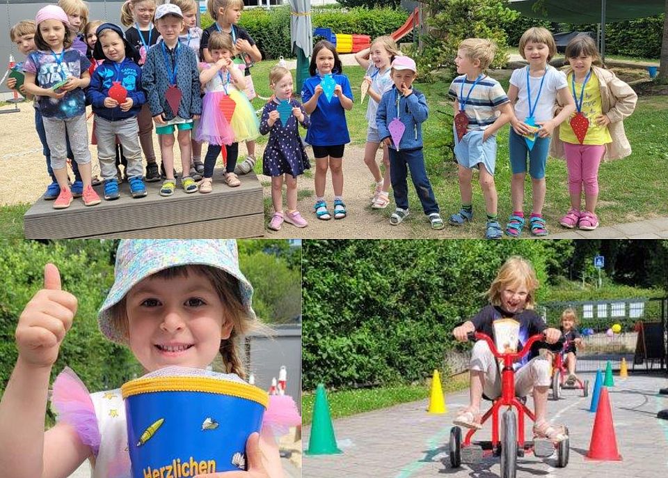 Alle Sternschnuppenkinder konnten am 24. Juni eine Zuckertütenmedaille nach Hause tragen. Die haben sie sich bei unserem bunten Sportfest verdient. Nach der Erwärmung unter Anleitung einer echten FCC-Fußball-Spielerin -unserer Julie- konnten sie beim Zuckertütenangeln, im Zuckertüten-Parcours, beim Schulbus-Ziehen und an vielen weiteren Stationen Geschick, Schnelligkeit und Kraft beweisen. Fit sind unsere Kinder – das haben sie bewiesen!