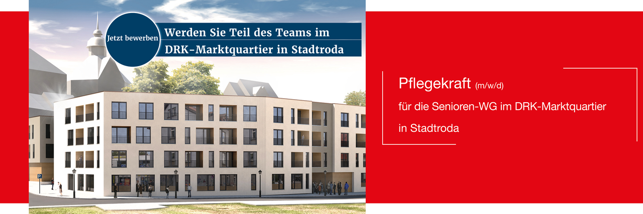 Das neue DRK-Marktquartier im Herzen Stadtrodas, circa 15 km entfernt von Jena, bietet Seniorinnen und Senioren verschiedene Pflege- und Betreuungsleistungen sowie vielfältige Wohnformen vereint unter einem Dach. Auf vier Etagen befinden sich eine Tagespflegeeinrichtung, eine ambulant betreute Senioren-Wohngemeinschaft, eine Vielzahl an altersgerechten Wohnungen für Betreutes Wohnen sowie eine Seniorenbegegnungsstätte. Auch die DRK-Sozialstation wird zukünftig hier ihren neuen Ausgangspunkt haben.