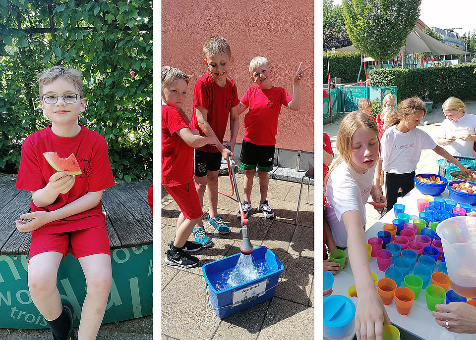 Natürlich war auch für Erfrischung gesorgt: Getränkestand, frisches Obst und eine kühle Dusche - fast wie bei einem richtigen Marathon.