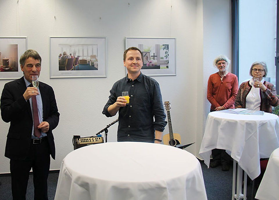 Zeitgleich wurde die Ausstellung "Lichtblicke – würdevolle Begleitung bis zum Tod" eröffnet. Die Bilder von Steffen Walther zeigen die Arbeit des Jenaer Netzwerkes Palliative Geriatrie in stationären Pflegeeinrichtungen.
