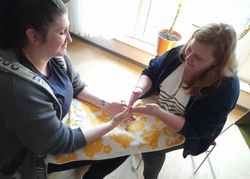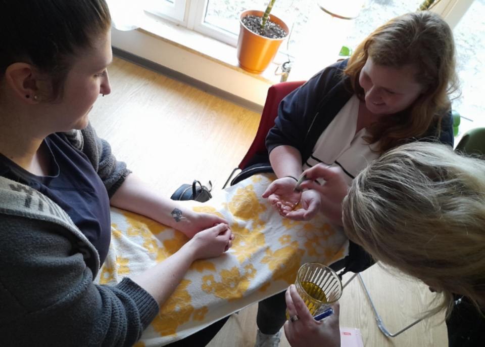 Des Weiteren konnten die Schüler im Selbstversuch ein paar Angebote der Aromapflege versuchen u.a. eine Handmassage mit Olivenöl - Zucker (als Peeling) und einem Aromaduft nach Wahl (z.B: Orange / Zitrone Lavendel).