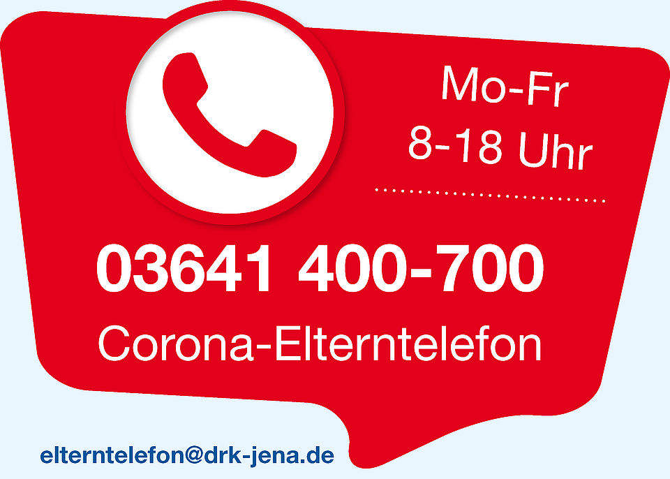 Ab Montag (23. März) ist das Corona-Elterntelefon unter Tel. 03641 400-700 geschaltet. Sozialpädagogische Fachkräfte stehen montags-freitags von 8-18 Uhr bereit und haben ein offenes Ohr für Fragen, Nöte und Sorgen der Anrufer angesichts der krisenbedingten Veränderungen im familiären Alltagsleben. Parallel dazu können Anfragen auch über elterntelefon@drk-jena.de gestellt werden.