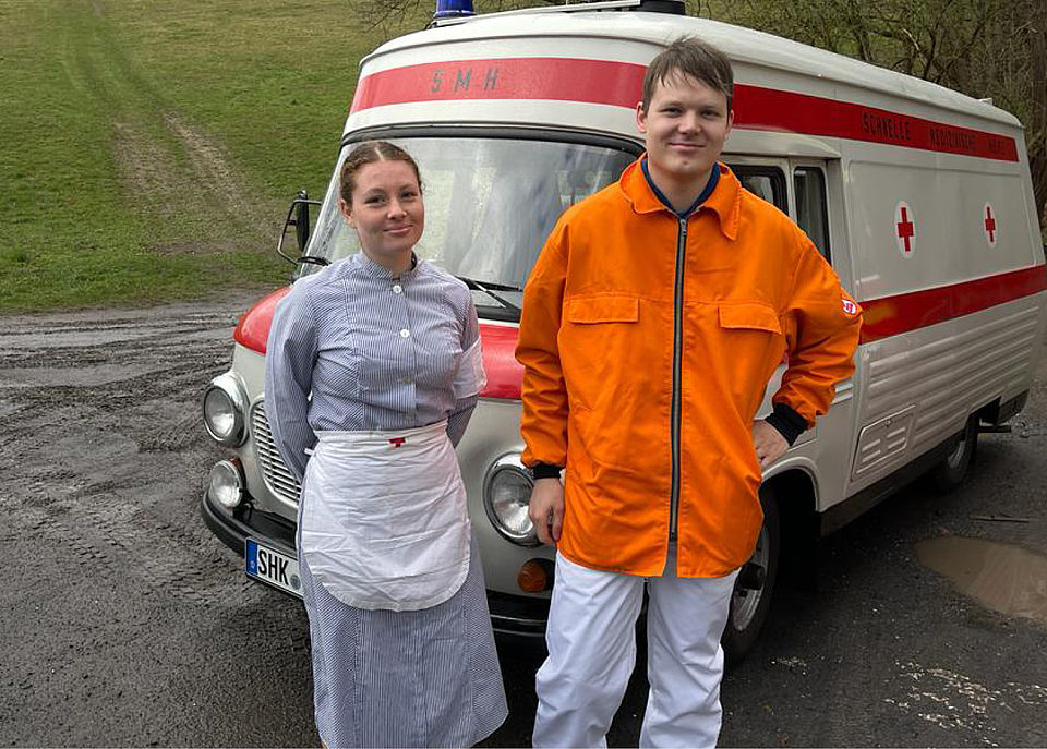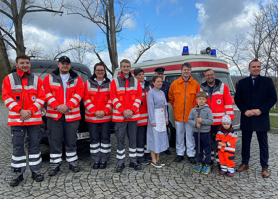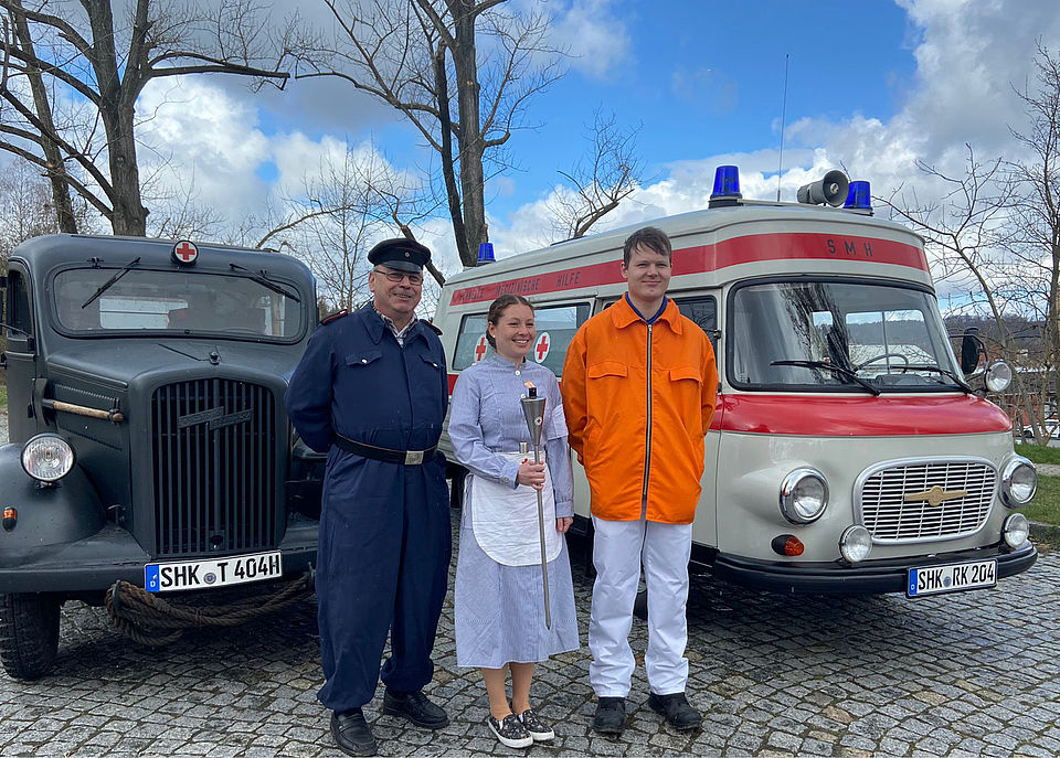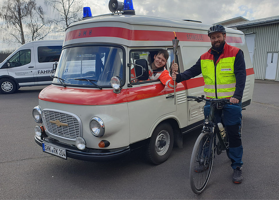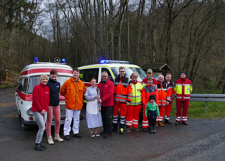 Am Samstag des 9. Aprils übernahmen wir die Fackel vom DRK-Kreisverband Saale-Orla. Dazu trafen wir uns an der Grenze zwischen Saale-Holzland-Kreis und Saale-Orla-Kreis. Während die Kameraden der Bereitschaft aus dem Saale-Orla-Verband mit dem Katastrophenschutz-LKW anreisten, ließen wir es uns nicht nehmen, unseren gut gepflegten Barkas B1000 aus DDR-Zeiten auszuführen.