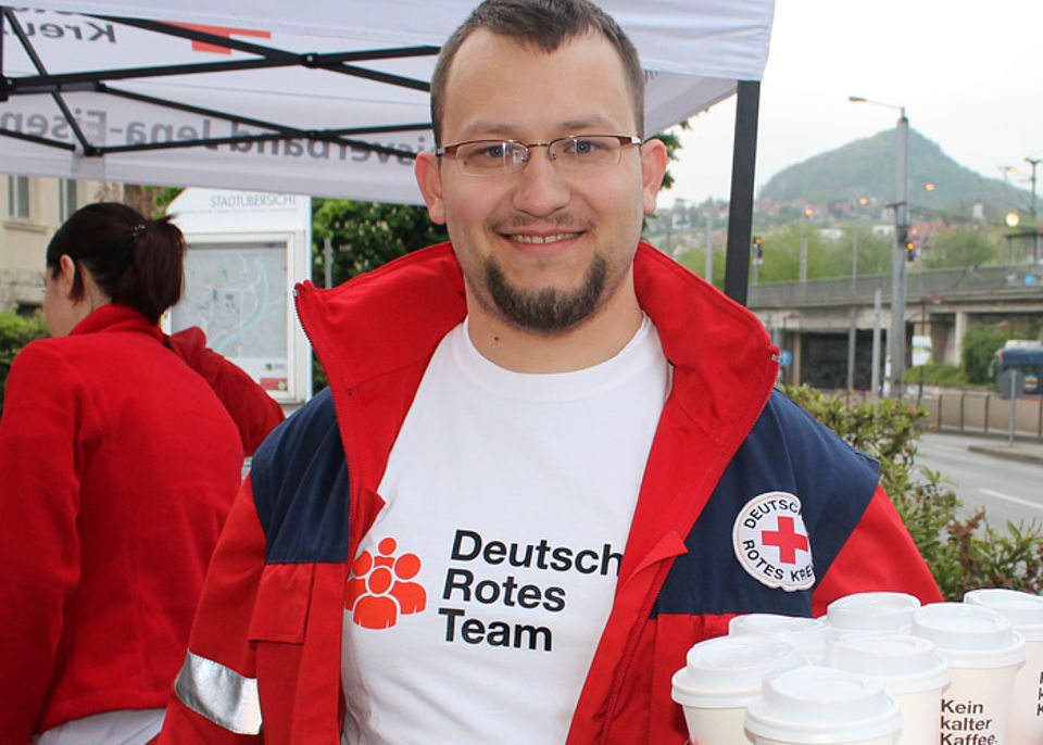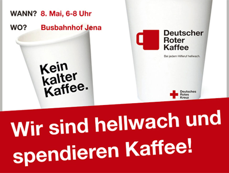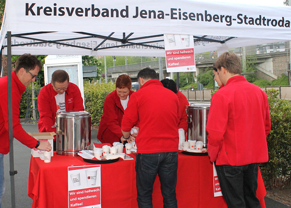 100 Liter gratis Kaffee für Pendler und Frühaufsteher – das gab es am 8. Mai, dem Geburtstag von Rotkreuzbegründer Henry Dunant, am Jenaer Busbahnhof.