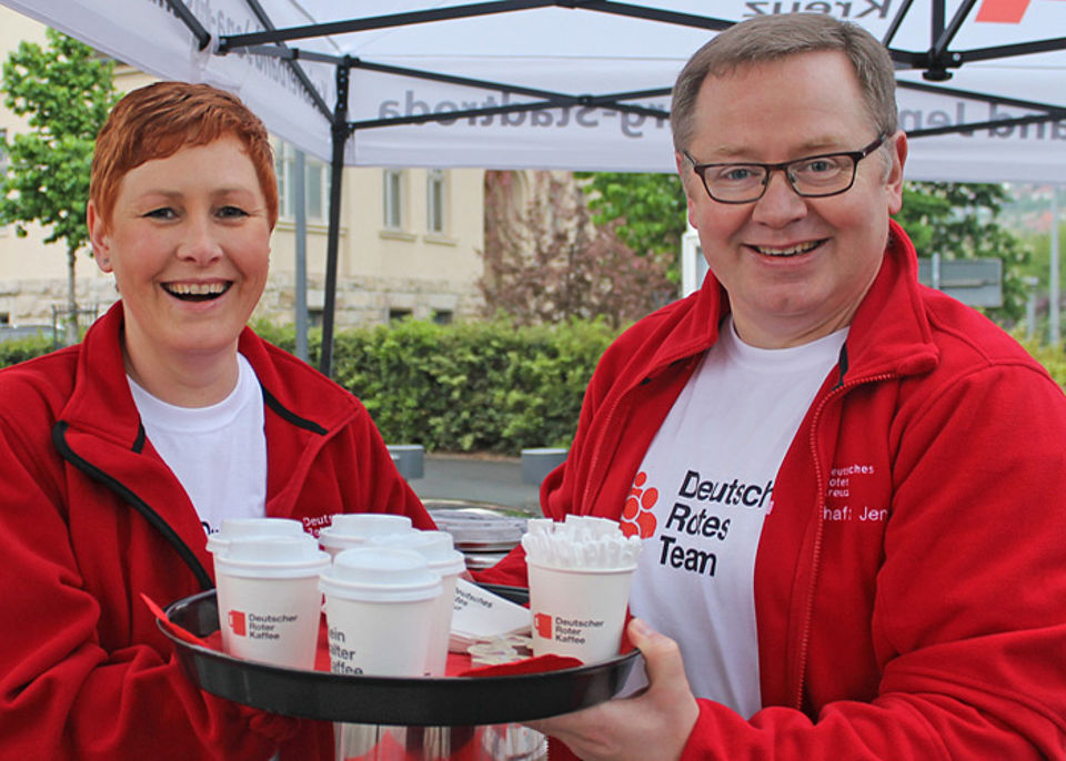 Wie bereits im Vorjahr wurden heiße Muntermacher ausgeschenkt. Der DRK-Kreisverband bedankte sich damit bei der Bevölkerung für die umfangreiche Unterstützung.Die Aktion kam erneut gut an und zauberte ein Lächeln in die Gesichter: Innerhalb von 1,5 Stunden wurden 600 Becher Kaffee verteilt, das Heißgetränk ist gerade am Montagorgen sehr beliebt. Gleichzeitig warben die Rotkreuzler mit dem Motiv "Deutsches Rote Team" für mehr Engagement und informierten über die zahlreichen Möglichkeiten, beim DRK-Kreisverband aktiv mit anzupacken.