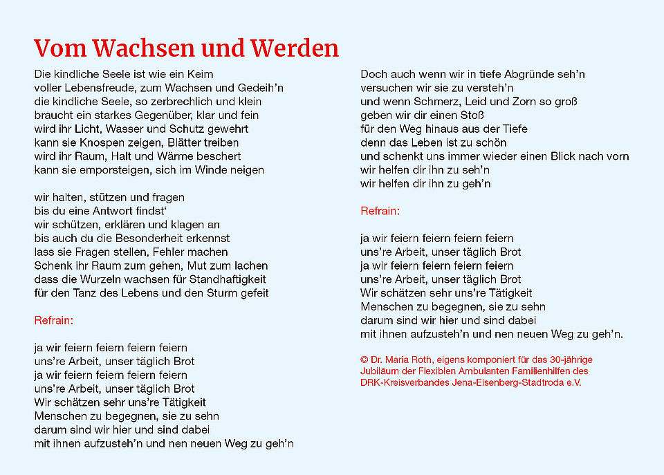 Die Beratungsstelle für Kinder, Jugendliche und Familien sowie die flexiblen ambulanten Erziehungshilfen des DRK-Kreisverband Jena-Eisenberg-Stadtroda e.V. haben in den letzten 30 Jahren vielen Menschen geholfen, schwierige Situationen zu bewältigen und ihre Lebensqualität zu verbessern. Dabei haben sie sich immer an den Bedürfnissen und Anforderungen der Familien orientiert und ihre Arbeit kontinuierlich weiterentwickelt.