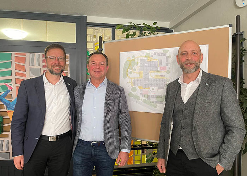 - Der erste Bauabschnitt beginnt mit dem Umbau des Flachbaus, in dem zukünftige Arztpraxen und andere Gesundheitsdienstleister untergebracht werden. Die Fertigstellung ist bis Mitte 2026 geplant.