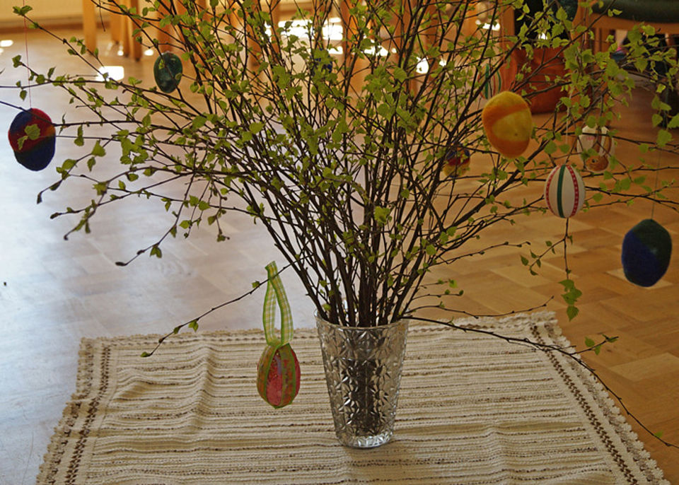 Ganz besonders freuten sich die Kinder über die von Gemeindemitgliedern liebevoll zusammengestellten Osterpäckchen. Als Dankeschön für die Feier schmückte jedes Kind zum Abschied den Osterstrauch mit einem zuvor selbst gebasteltem Osterei.
