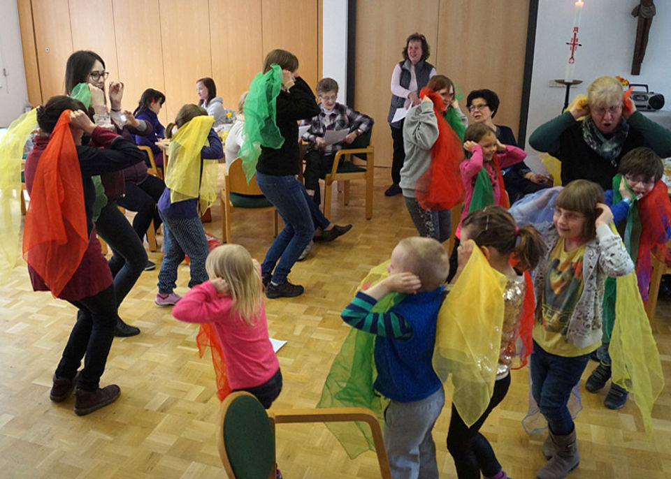 Jedes Jahr lädt die Jenaer Gemeinde Bedürftige zu einer Osterfeier ein. In der Pfarrkirche "St. Johannes Baptist" erklärte der Pfarrer den Gästen den Kirchenaufbau sowie die Bedeutung des christlichen Osterfestes und der Taufe. Für viele Kinder war es der erste Besuch einer Kirche und sie lauschten gespannt den Ausführungen.