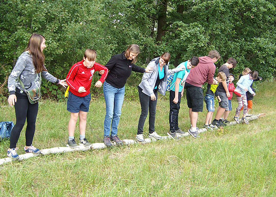 Das DRK-Team der ambulanten Erziehungshilfen hatte sich im Vorfeld spannende Aktionen überlegt, die gemeinschaftlich in der Gruppe bewältigt wurden.