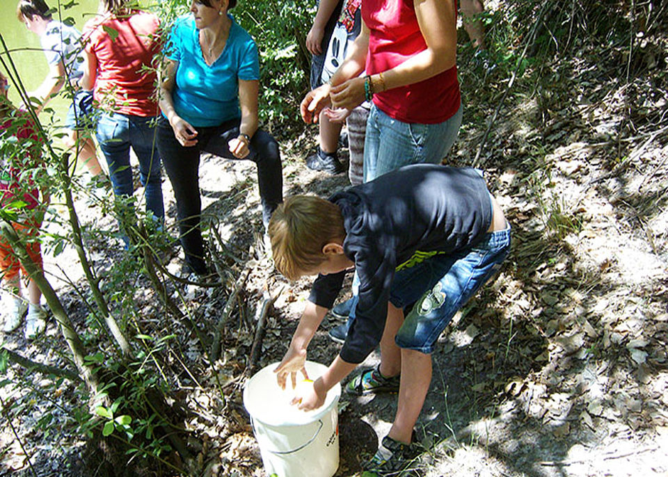 Neben erlebnispädagogischen Spielen fanden die Kinder auf ihrer Route durch den Wald auch einen Geocach-Schatz, der bestaunt und z.T. durch eigene Überraschungsgeschenke eingetauscht wurde.
