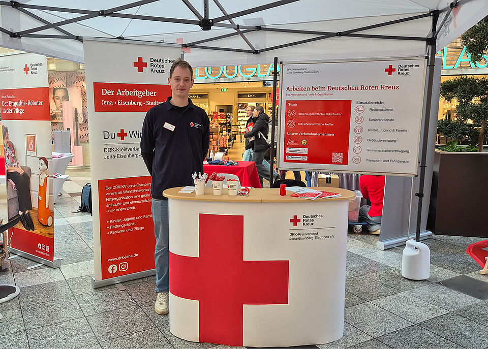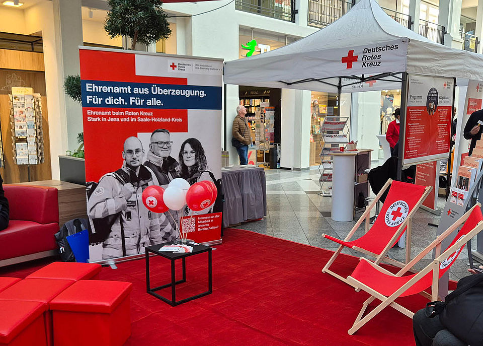 Mit einem starken Signal für Zusammenhalt und Ehrenamt haben heute Oberbürgermeister Dr. Thomas Nitzsche, der Vorstandsvorsitzende des DRK‑Kreisverbands Jena‑Eisenberg‑Stadtroda Peter Schreiber sowie die Präsidentin des DRK‑Landesverbands Thüringen Marion Bauerfeind die diesjährigen DRK‑Aktionstage in der Goethe Galerie Jena eröffnet.
