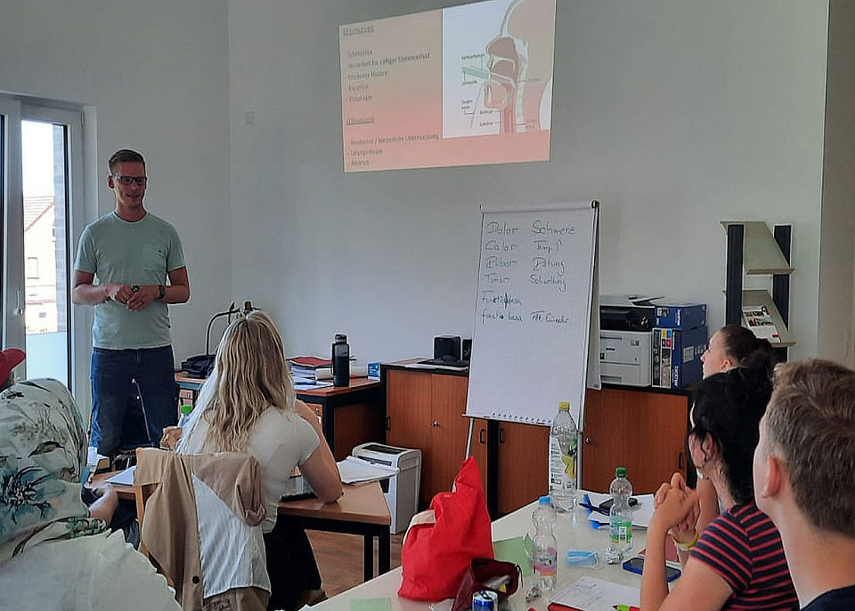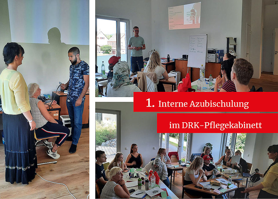 Am 21. Juni ging es ausnahmsweise nicht um die Puppe. An diesem Tag war theoretischer Unterricht angesagt. Erstmals wurde eine interne Ausbildungsschulung angeboten und durchgeführt. Die 14 SchülerInnen kamen aus der ambulanten (Jena und Stadtroda) und stationären Pflege (Seniorenheim Am Kleinertal, Jena) des DRK und aus dem Universitätsklinikum Jena, um an der Schulung teilzunehmen.