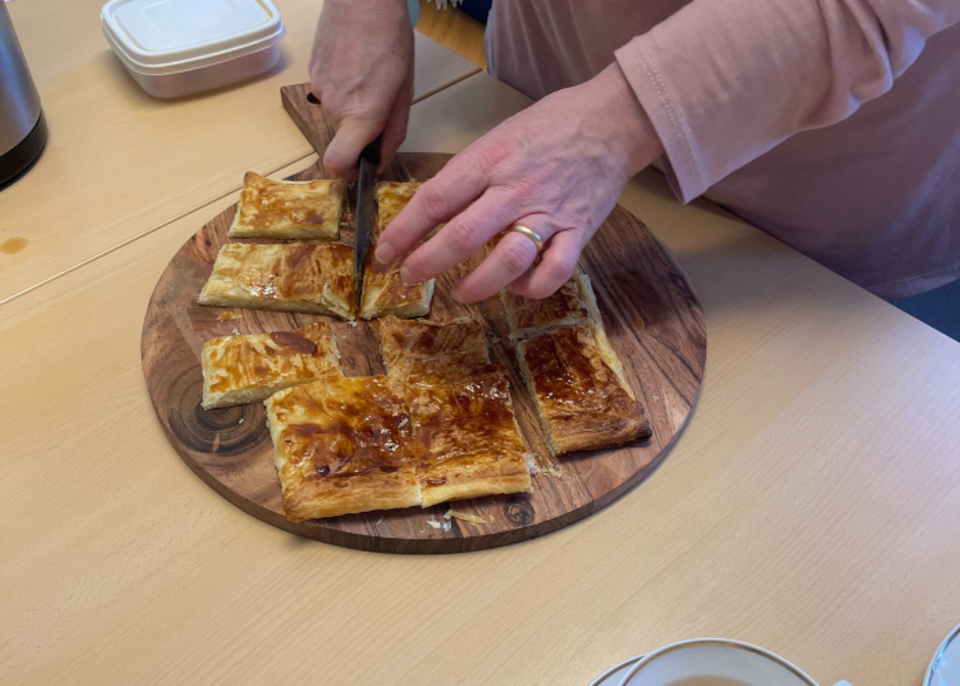 Hier wurde gemeinsam mit den SchülerInnen traditionell „Galette des rois“ gebacken und gegessen.
