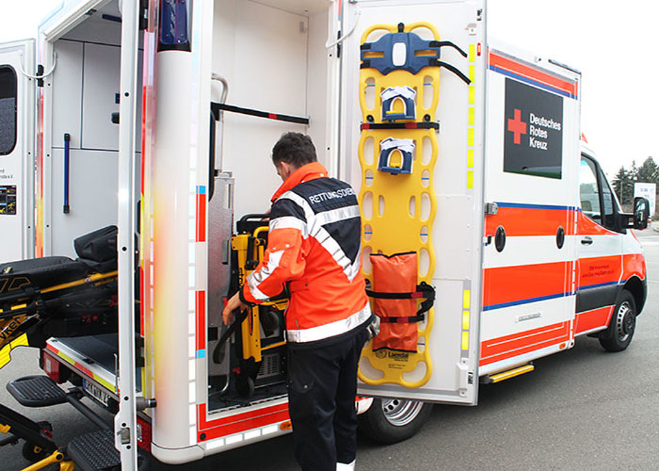 Die Mercedes Sprinter mit 163 PS, welche von der Firma BINZ in Ilmenau umgebaut wurden, bieten neben bestmöglicher Patientenversorgung auch ergonomische und moderne Arbeitsbedingungen für das medizinische Personal. Beide RTW sind mit einer elektrohydraulischen Patientenfahrtrage bestückt, die ein rückenschonendes Ein- und Ausladen von Notfallpatienten ermöglicht. Mit dem im Fahrzeug vorgehaltenen klappbaren "Raupenstuhl" können Patienten zudem komfortabel und rückenschonend eine Treppe hinuntergefahren werden. Zahlreiche LED-Leuchten im Innenraum, sowie als Arbeitsscheinwerfer, Warnanlage und Frontblitzer bieten optimale Arbeitsbedingungen. Schließlich ist auch eine sogenannte "RettungsBoa" verlastet, die bei der schnellen Rettung von Personen aus verunfallten Fahrzeugen hilft.