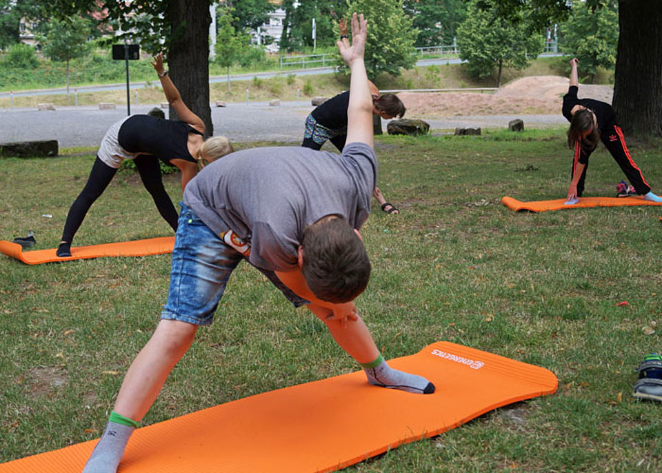 Körper- und Entspannungsübungen gab es bei einer Yogastunde an der frischen Luft. Hier konnten die Teilnehmer einfach mal abschalten, den ganzen Streß hinter sich lassen und neue Kräfte sammeln. Ganz nebenbei wurden Konzentrationsfähigkeit und Selbstvertrauen gestärkt.