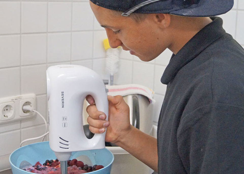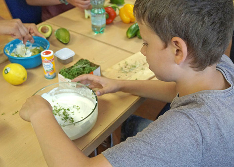 Bei einem Quiz ging es anschließend um gesunde Ernährung, Sport und Kalorienverbrauch. Die Jugendlichen lernten von ihren Familienhelfern nicht nur ganz viel zum Thema ausgewogene Ernährung und frische Zutaten, sondern erlebten auch, wie viel Spaß es machen kann, in der Gruppe gesunde Leckereien, wie Smoothies, Salate und Dips zuzubereiten. Am Ende des schönen Tages wurden die Köstlichkeiten dann gemeinsam verspeist.