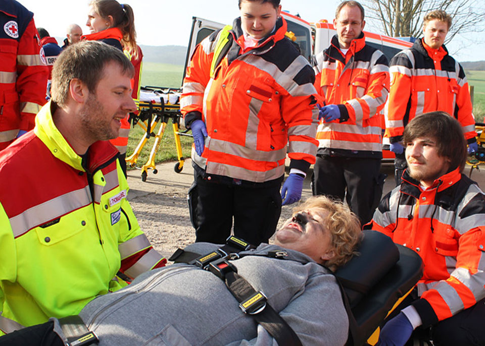 Der DRK-Kreisverband Jena-Eisenberg-Stadtroda nahm an der Übung mit 16 Fahrzeugen, 5 Notfallsanitäter-Azubis aus dem zweiten Lehrjahr, 7 aus dem ersten und 16 Rettungssanitäter-Azubis teil. Sie wurden von 10 Praxisanleitern und 2 Rettungsdienst-Einsatzleitern des DRK-Kreisverbandes unterstützt.