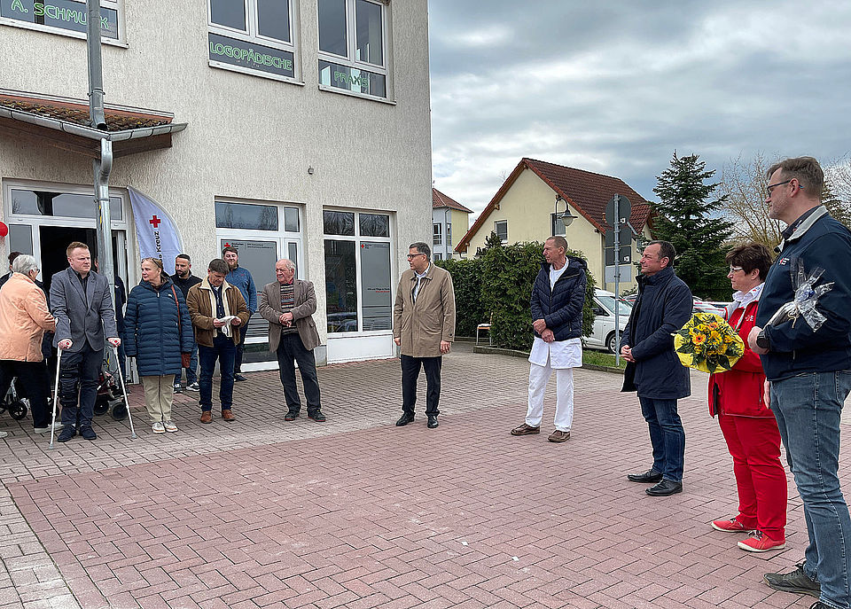 Neben der DRK-Sozialstation für die ambulante Pflege und dem DRK-Begegnungszentrum befindet sich im Gebäude nun auch die neu eröffnete Hausarztpraxis von Dipl.-Med. Rainer Kötsche sowie eine Ergotherapeutin, eine Logopädin und ein Fußpflegesalon. Die ebenfalls ansässige Linden-Apotheke bietet ab sofort eine Abholstation für Medikamente an.