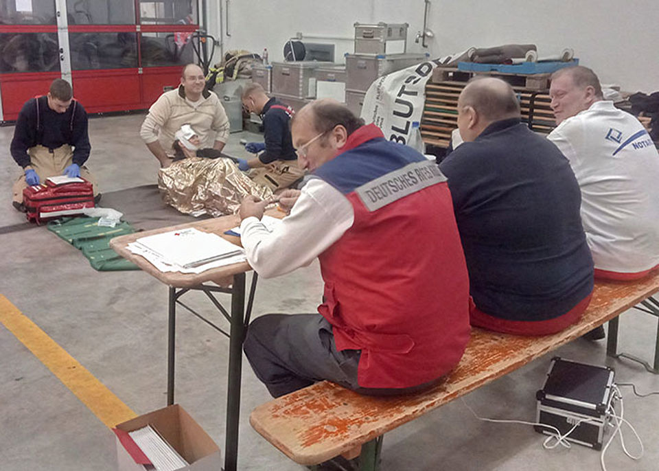 Der Kurs endete mit einer theoretischen und praktischen Prüfung, bei der die Teilnehmer unter den wachsamen Augen der Prüfungskommission um Wilfried Krüger (Lehrgangsleiter), Dr. Dirk Klemmt (Kreisverbandsarzt) und Detlef Taugnitz (Ausbilder Sanitätsdienst) zeigten, was sie in den vergangenen Wochen gelernt hatten.