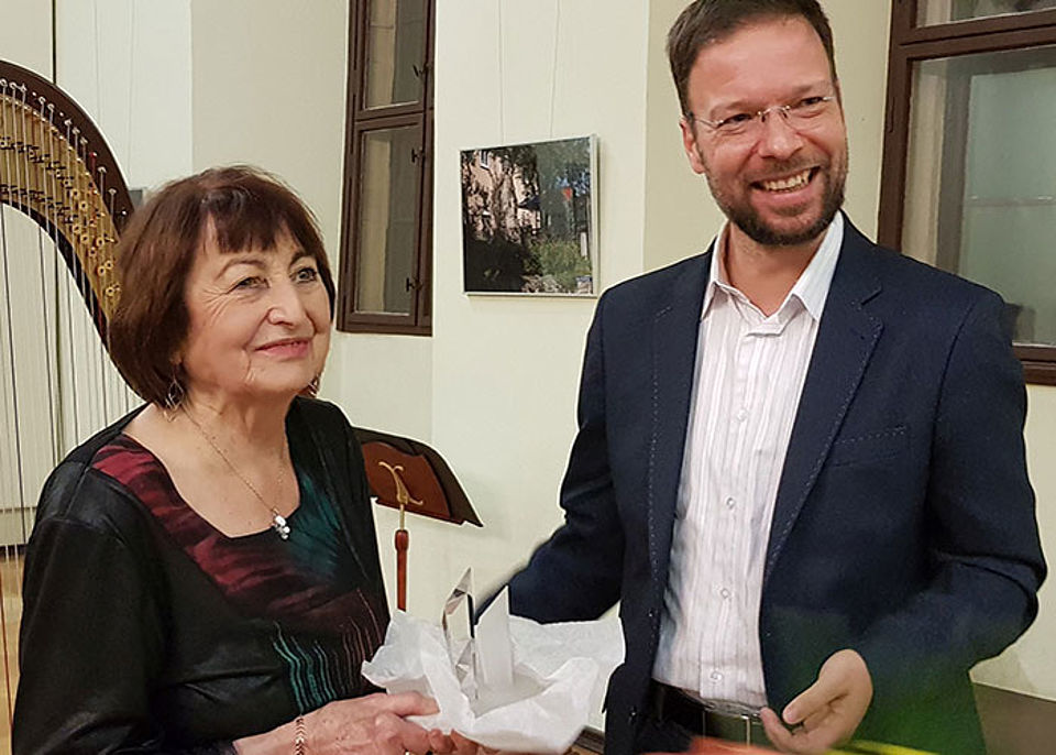 Oberbürgermeister Dr. Thomas Nitzsche überreichte ihr eine Urkunde und einen Glaspokal, der vom Bildungszentrum Schott-Zeiss-Jenoptik eigens für die Ehrung angefertigt wurde. Sonja Schiffler schreibt seit 2000 ehrenamtlich für die GinkgoBlätter, die das Seniorenbüro herausgibt. Dort veröffentlicht sie Artikel zur Jenaer Stadtgeschichte der vergangenen 70 bis 100 Jahre. Außerdem veranstaltet sie einmal im Monat den stadtgeschichtlichen Gesprächskreis im DRK-Seniorenbegegnungszentrum in der Dammstraße. Für viele ältere Menschen ist das Erinnern sehr wichtig. Ihnen bereitet es sehr viel Freude, wenn sie zum Beispiel über alte Handwerke und Geschäfte schreibt und erzählt, die noch aus der Kindheit bekannt sind und die es heute gar nicht mehr gibt.