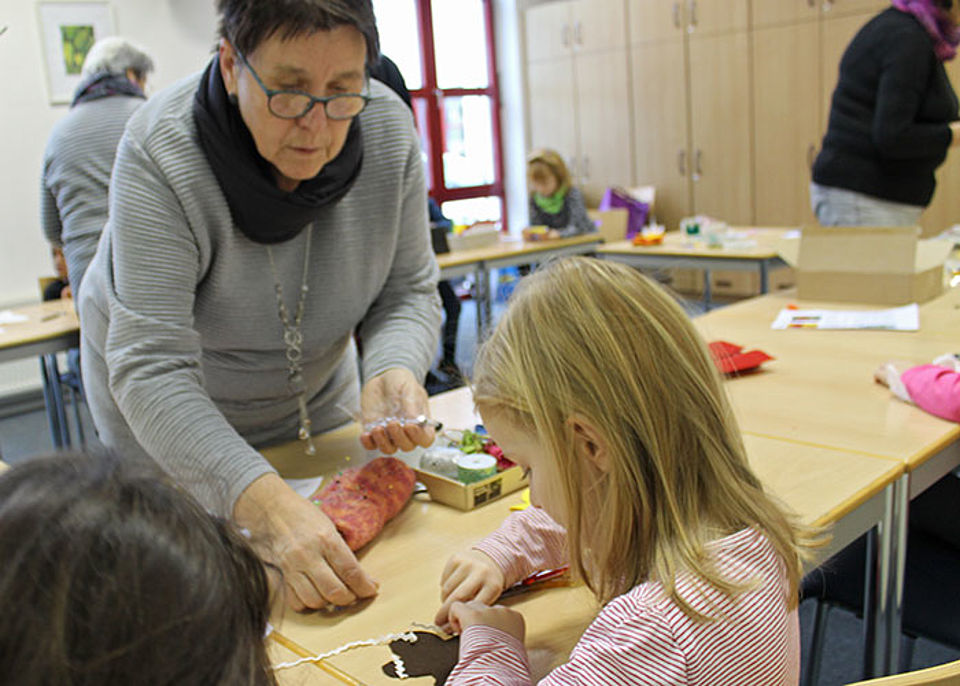Die Vorschulgruppe aus der Kita DUALINGO war wieder zu Gast im Seniorenbegegnungszentrum in der Dammstraße. Unter der fachkundigen Anleitung der kreativen Damen der Dienstags-Patchworkgruppe bastelten Jung und Alt gemeinsam mit Schere, Kleber und Filz wunderschöne Anhänger und Windlichter für die Advents- und Weihnachtszeit.
