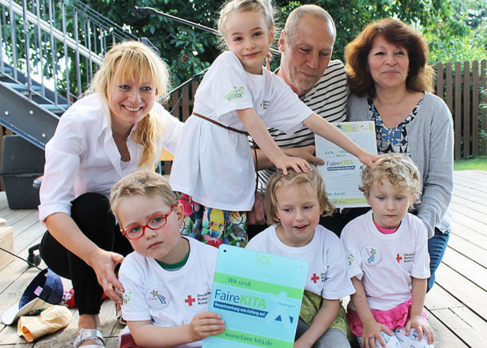 Ulli Hoffmann und Teresa Popp vom Eine Welt Haus Jena übergaben im Rahmen einer kleinen Feier im Beisein vieler Gäste das wohl verdiente Zertifikat. Nach einem wunderschönen Programm und leckerer selbst hergestellter fairer Schokoladenköstlichkeiten führten die Sternschnuppen alle Gäste durch die Einrichtung und zeigten ganz stolz alle "fairen Aktivitäten".