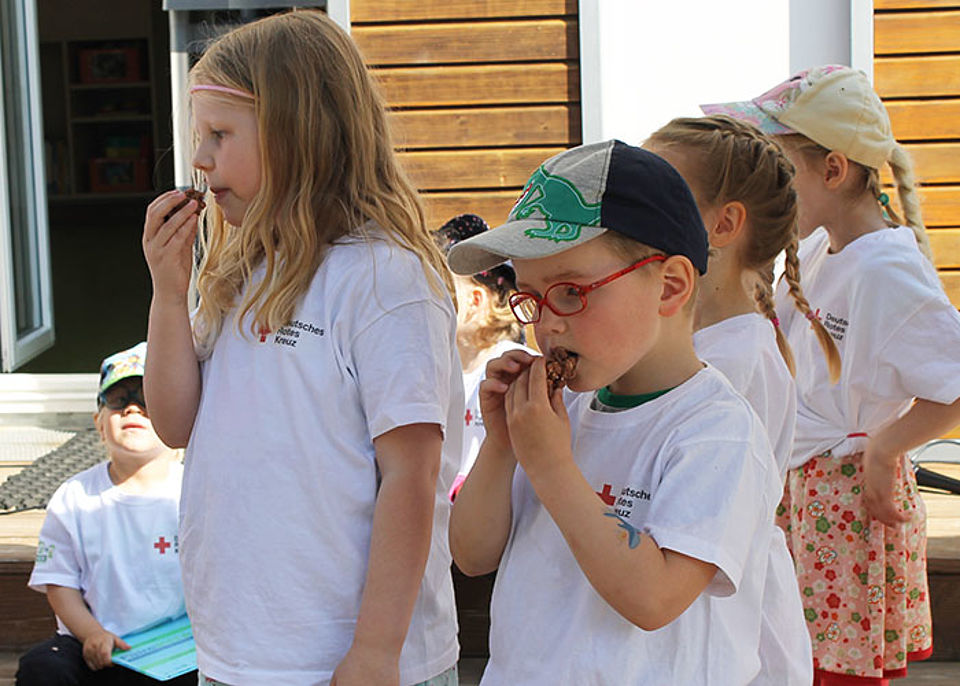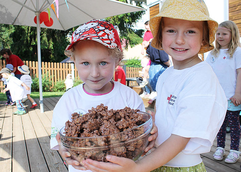 In weiteren Projekten, wie "Träume aus Kakao" und "Alles Banane", wurde das Thema fairer Handel fokussiert. Die Mädchen und Jungen befassten sich mit partnerschaftlichen Handeln, lernten verschiedene faire Produkte kennen und gingen anschließend im Supermarkt auf Spurensuche. Anhand von zahlreichen Bildern und Geschichten wurden sie mit den einzelnen Produktionsschritten, von der Ernte bis zum Verkauf, vertraut gemacht. Dabei wurden auch Aspekte wie biologischer Anbau, Arbeitsbedingungen und Kinderarbeit thematisiert. Die gewonnenen Informationen wurden zum Projektende noch einmal kindgerecht reflektiert und vertieft. Fair Trade Produkte, wie Schokolade und Bananen, haben übrigens schon längst Einzug in die Kita gehalten, schließlich wird fairer Handel im Alltag gelebt.