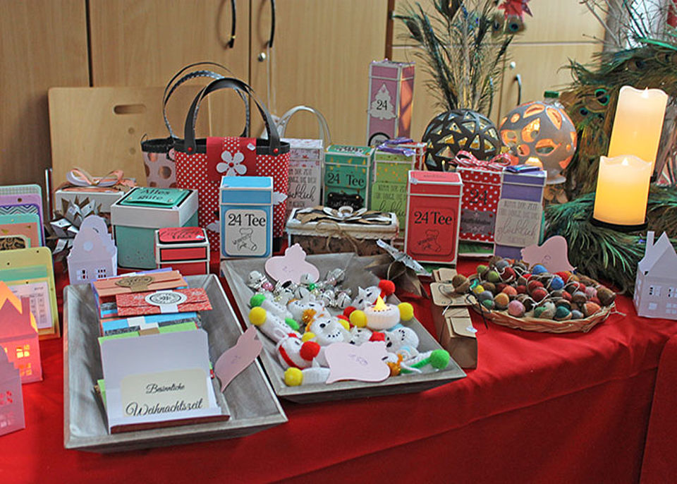 Seit Wochen waren wieder fleißige Hände am Werk. Ganz sorgfältig und mit Bedacht entstanden in den Kreativkursen wunderschöne weihnachtliche Handarbeiten aus ganz verschiedenen Materialien, damit eine große Auswahl für die Besucher des jährlichen Kreativbasars bereitstand. Wer sich an den prall gefüllten Tischen umschaute und inspirieren ließ, fand viele Weihnachtsgeschenke für seine Lieben. Bei leckerer Kürbissuppe und selbstgebackenen Kuchen machte das alles noch mehr Freude – Vorfreude eben!