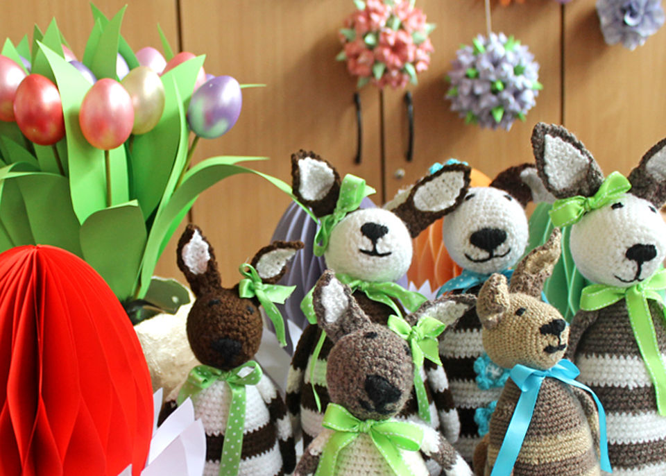 Aus den verschiedensten Materialien hatten die begabten Damen der DRK-Kreativkurse wieder allerlei Dekoratives, das auf den Frühling und die Osterzeit einstimmen soll, vorbereitet. Für jeden Geschmack war etwas dabei: Türkränze, Anhänger für den Osterstrauch, kleine Hasen und Küken aus Stoff und Filz, gestrickte Hühner und gehäkelte Taschen für die Ostereier.