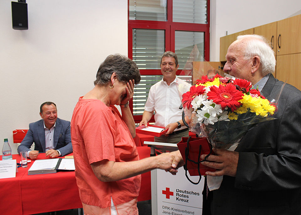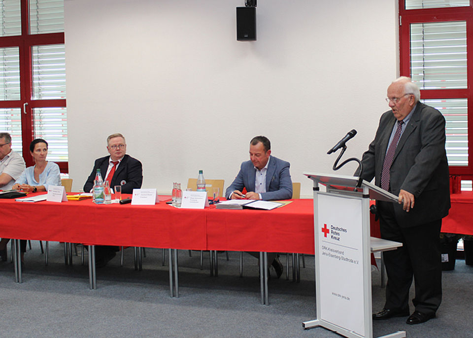 Im Rahmen der Kreisversammlung des DRK-Kreisverbandes Jena-Eisenberg-Stadtroda e.V. wurde das Geschäftsjahr 2021 erfolgreich abgeschlossen. Neben den Berichten und Beschlüssen aus den verschiedenen Bereichen stand auch die Wahl eines neuen Präsidenten im Fokus. Nach über 30 Jahren Tätigkeit als ehrenamtlicher Präsident des Kreisverbandes, hat Herr Bayer am heutigen Tag aus altersbedingten Gründen sein Amt niedergelegt. Gemeinsam mit dem Vorstand hat er den Kreisverband über Jahrzehnte maßgeblich geprägt.