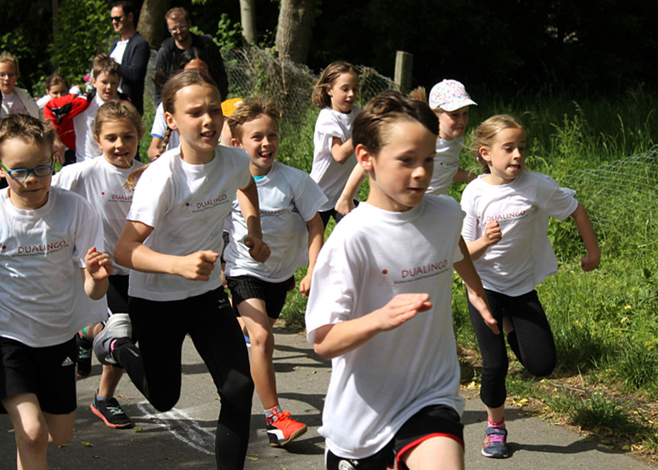 Jedes Jahr zum Schuljahresende rüsten sich die DUALINGO-Schüler und Kita-Kinder für den traditionellen Benefizlauf entlang des Saale-Radwanderweges.