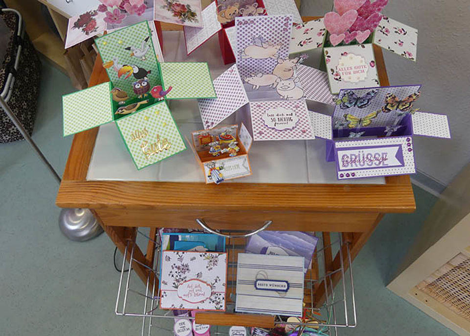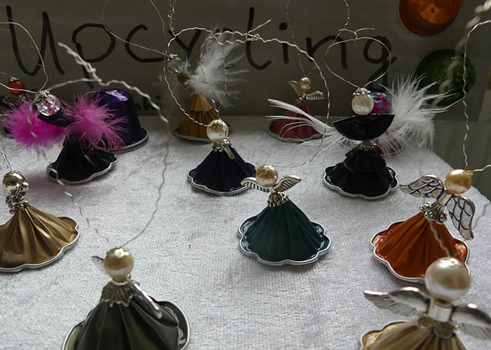 Aber nun, endlich, konnte wieder ein eigener kleiner Kreativmarkt stattfinden. Nachhaltigkeit wurde an diesem Dienstag ganz groß geschrieben. Hier gab es Upcycling-Schmuck und handgefertigte Grußkarten und Geschenkverpackungen.